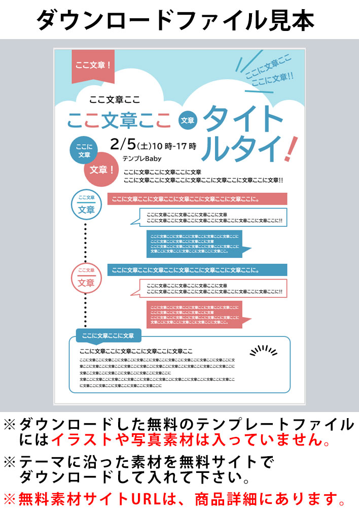 ※無料ダウンロードされたものには、イラストや写真の素材は入っていません。