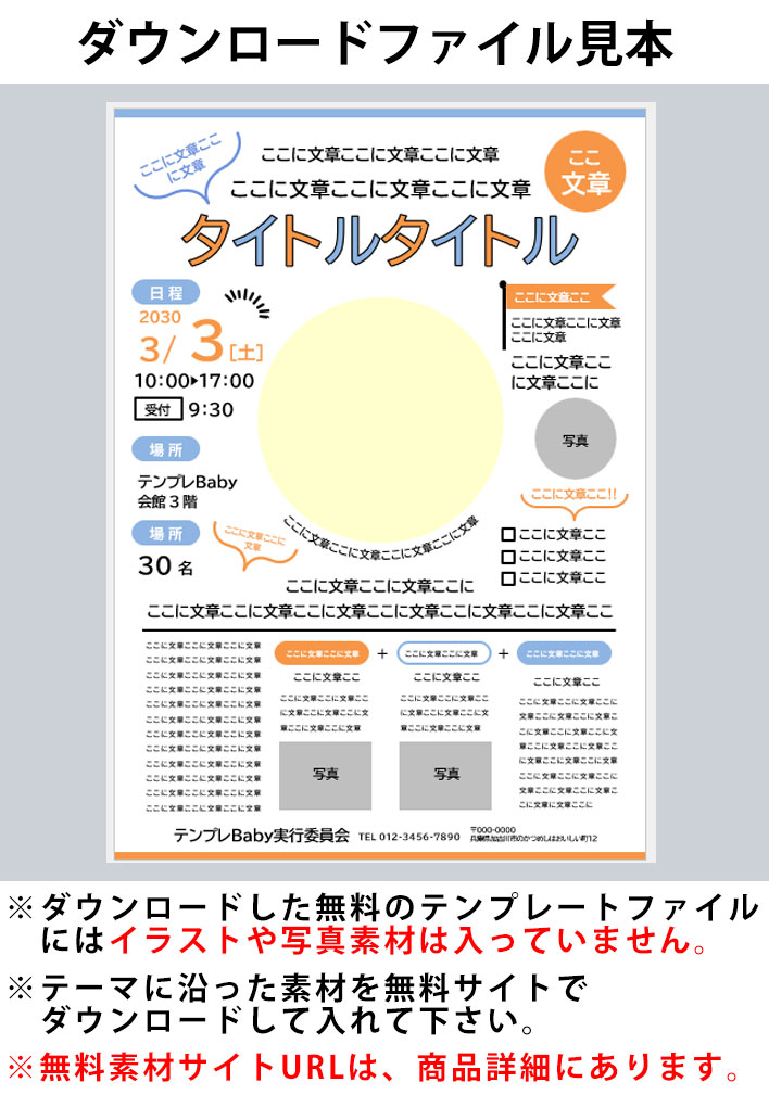 ※無料ダウンロードされたものには、イラストや写真の素材は入っていません。