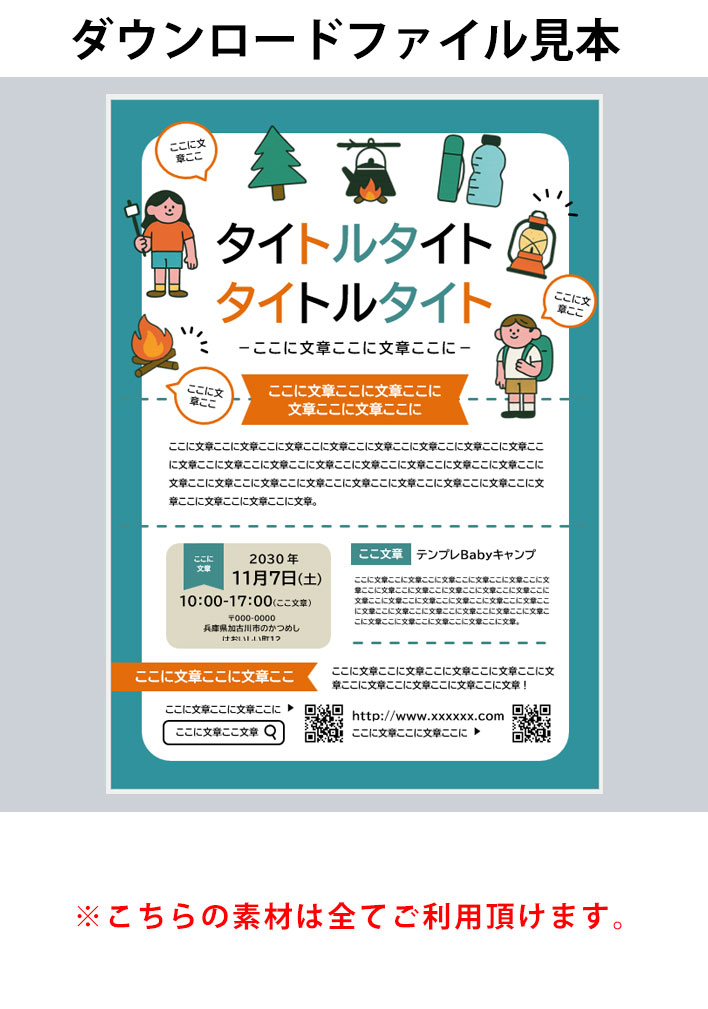 キャンプ、アウトドア、A3ポスター&チラシ、Word140