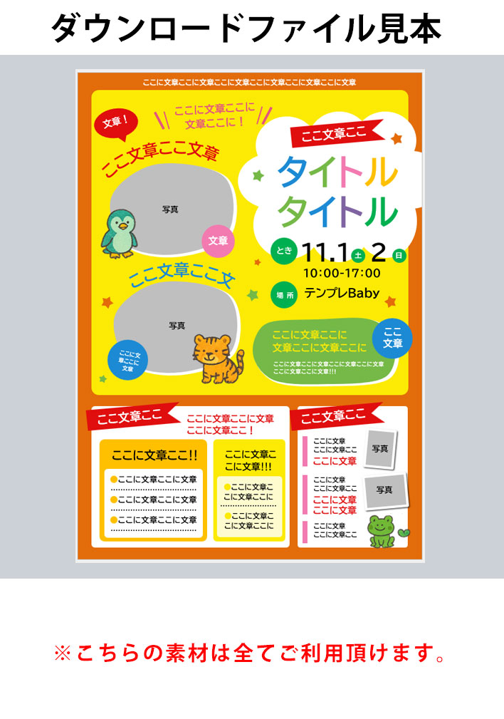 動物、子供イベント、A3ポスター&チラシ、Word142