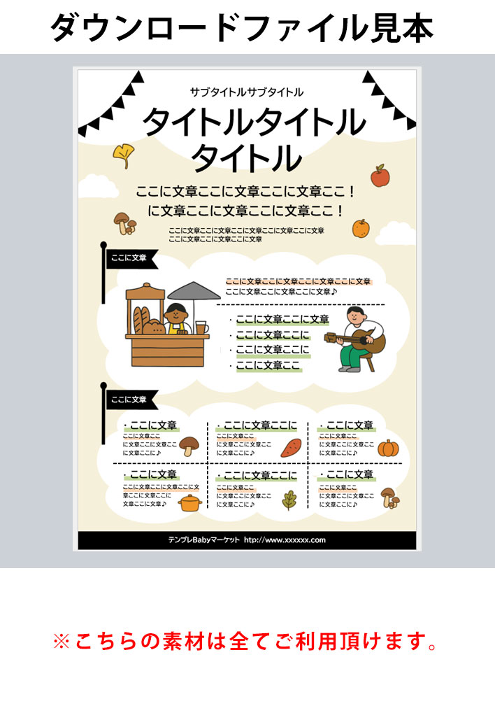 マルシェ、イベント、A3ポスター&チラシ、Word144