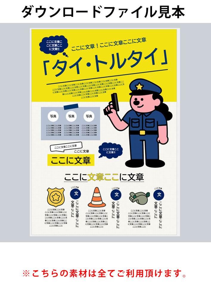 警察官、注意、A3ポスター&チラシ、Word153 商品番号:153 警察官、注意、A3ポスター&チラシ、Word153 在庫状態:在庫有り ¥0(税込) ■このWord無料テンプレートについて ※こちらに入っている素材は利用規約の範囲内でご利用が可能です。 その他 レビュー( 0 ) 再ダウンロード有効期間(日数)無期限 ファイル名153.docx 公開日2030/7/7 バージョン0.1 制作Maruko ログインしてレビューを書く事ができます。 ログインする お客様のレビューをお待ちしています。