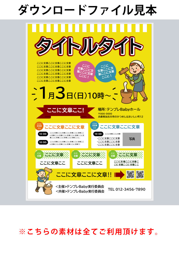 餅つきイベント、正月、A3ポスター&チラシ、Word229