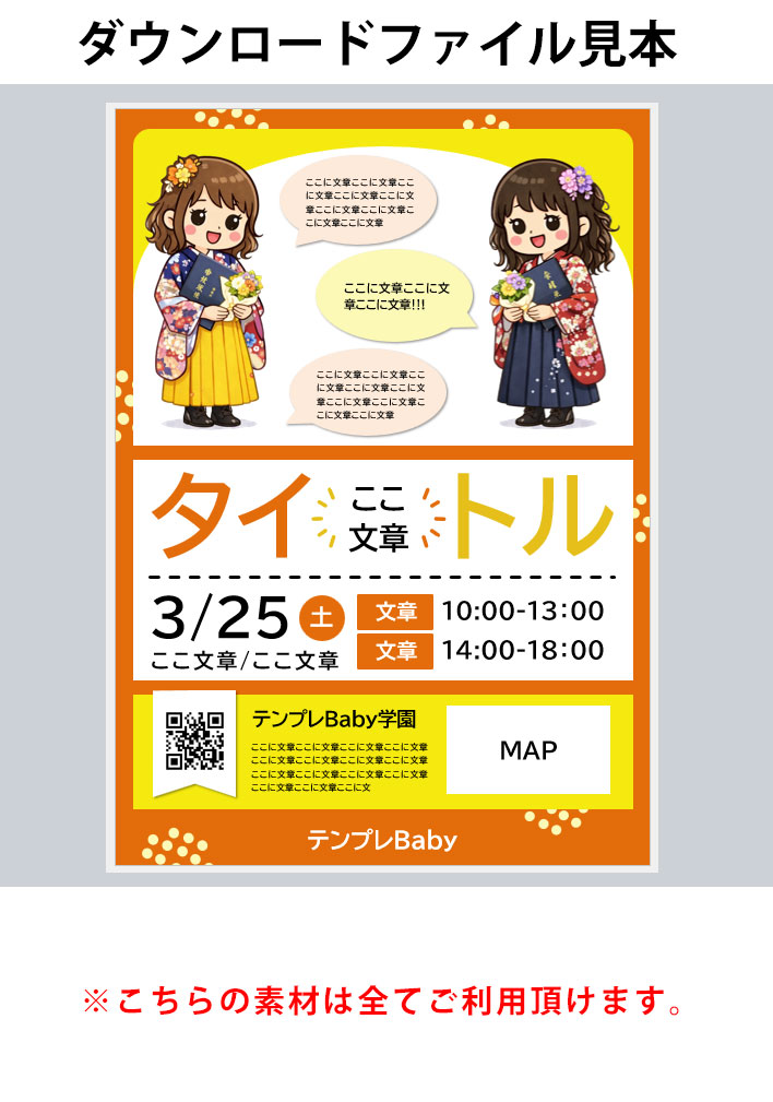 卒業式、入学式、学生、学校、A3ポスター&チラシ、Word254