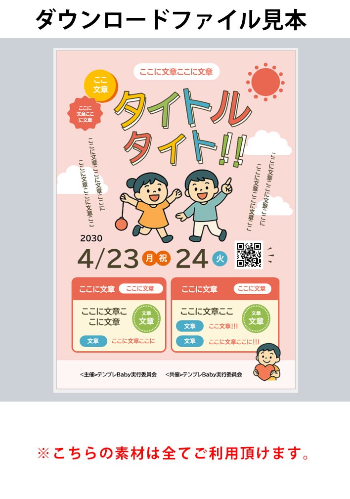 子供、イベント、A3ポスター&チラシ、Word257 商品番号:257 子供、イベント、A3ポスター&チラシ、Word257 在庫状態:在庫有り ¥0(税込) ■このWord無料テンプレートについて ※こちらに入っている素材は利用規約の範囲内でご利用が可能です。 その他 レビュー( 0 ) 再ダウンロード有効期間(日数)無期限 ファイル名257.docx 公開日2030/7/7 バージョン0.1 制作Maruko ログインしてレビューを書く事ができます。 ログインする お客様のレビューをお待ちしています。